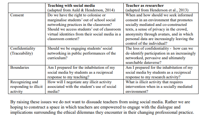 Lovepreet shared an article by Henderson, Auld, and Johnson, “The Ethics of Teaching with Social Media,” which shines a spotlight on vital considerations for all educators who are encouraging students to use social media.